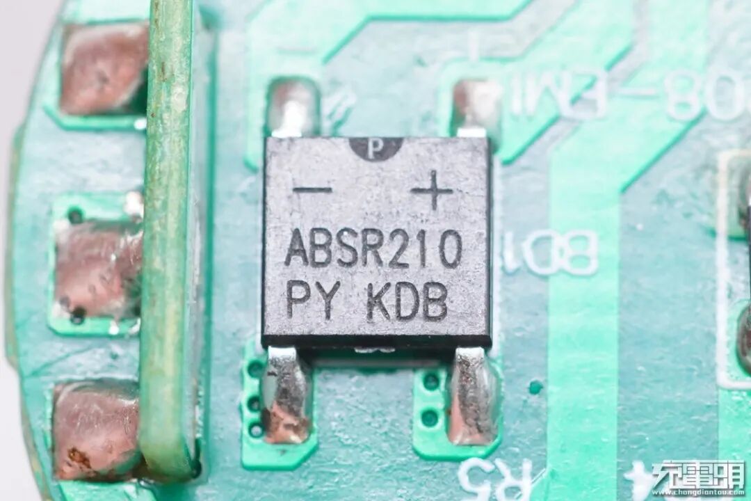 输出端扇形小板正面设有次级同步整流芯片、协议芯片以及输出VBUS开关管。