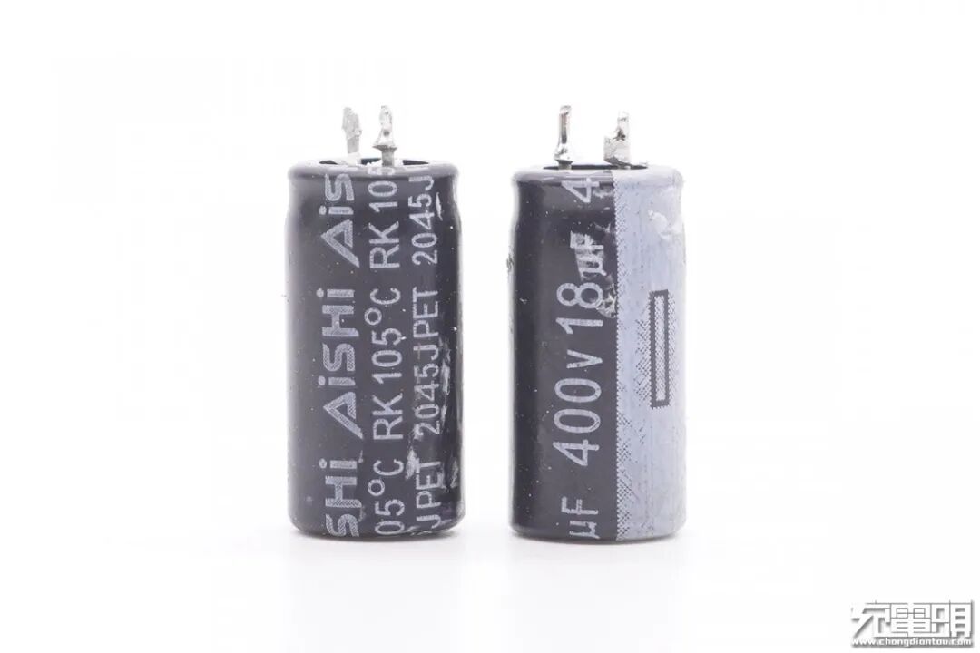 两颗高压滤波电解电容来自艾华,规格都是400V 18μF。