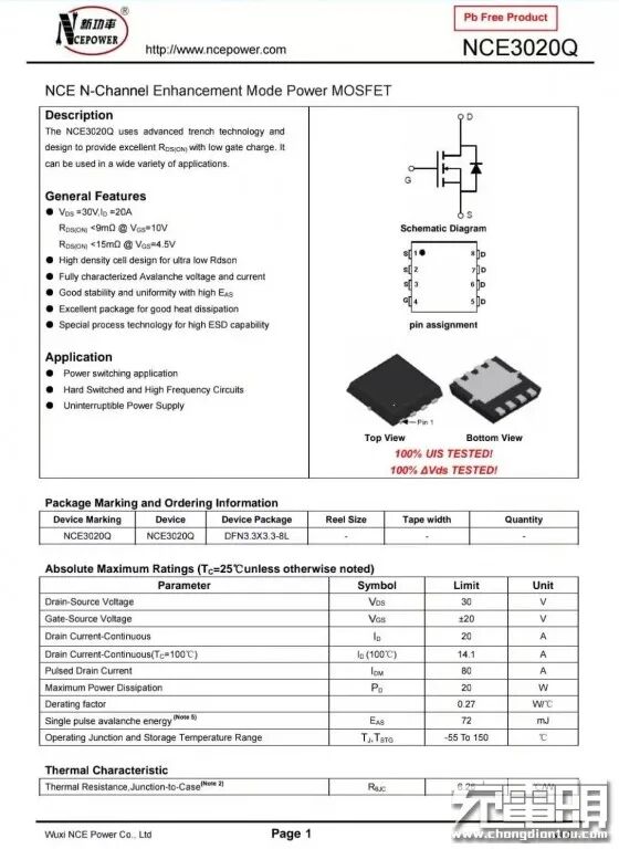 输出VBUS开关管采用新功率NCE3020Q,NMOS,耐压30V。