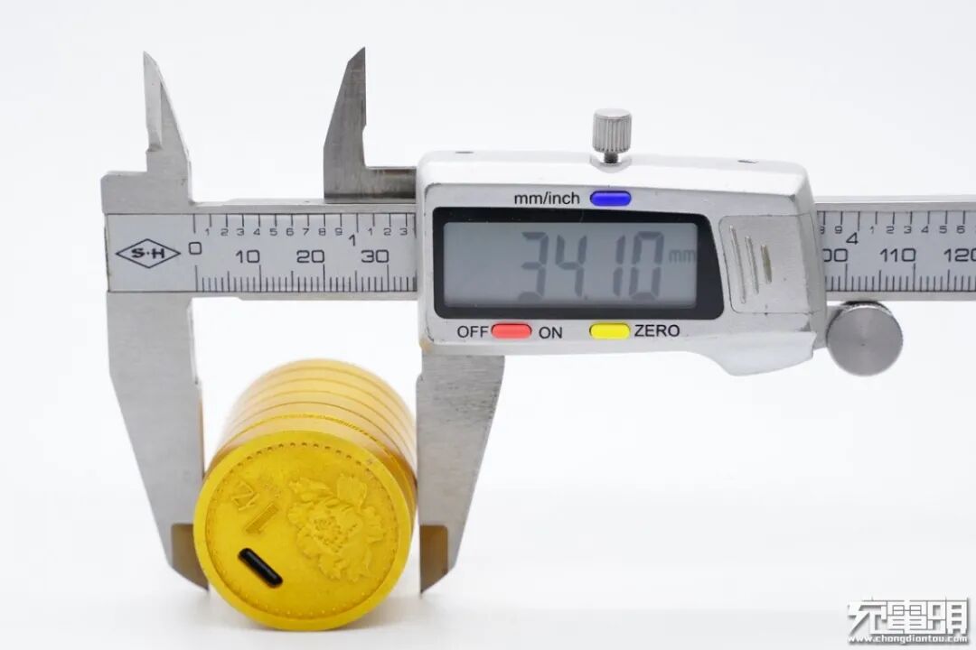 使用游标卡尺实测充电器机身直径为34.1mm。