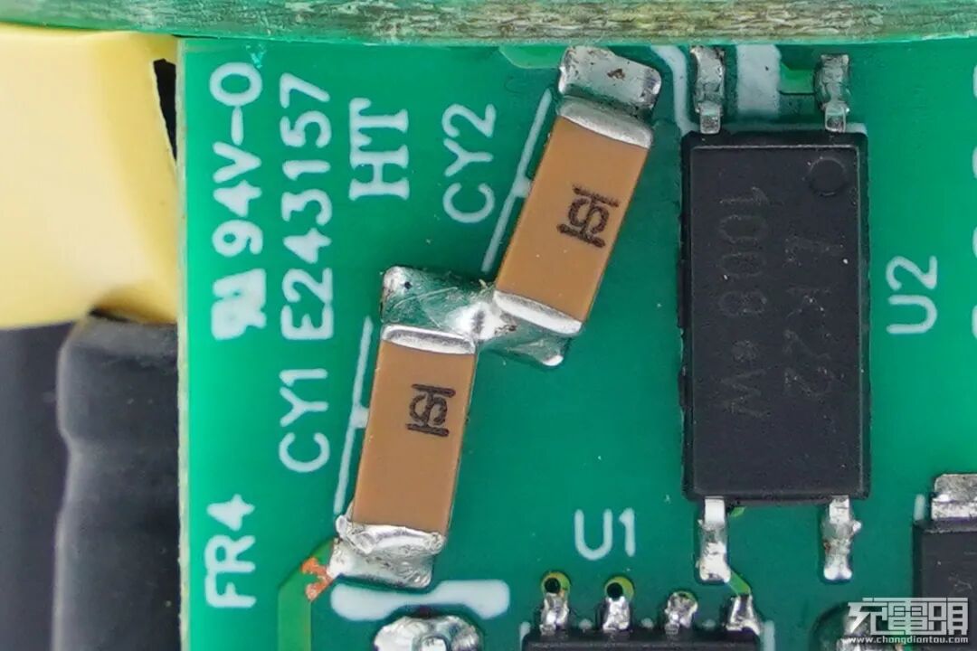 光耦旁边,两颗贴片Y电容串联,用于输出抗干扰。