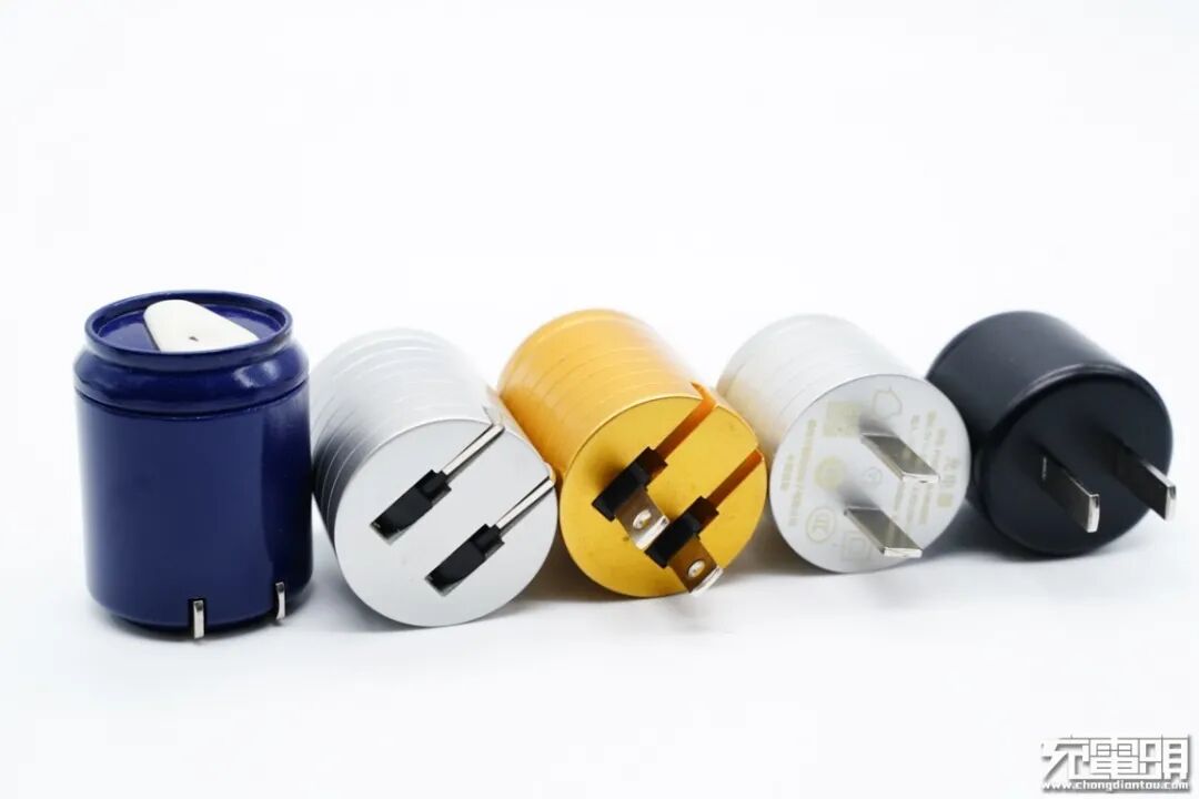 该系列20W充电器除了钱币叠堆的圆柱造型外,还有多边形、可乐易拉罐造型,此外也有固定/折叠插脚可选,各个方面都有考虑到,还有符合三星PPS快充协议的25W同系列产品。