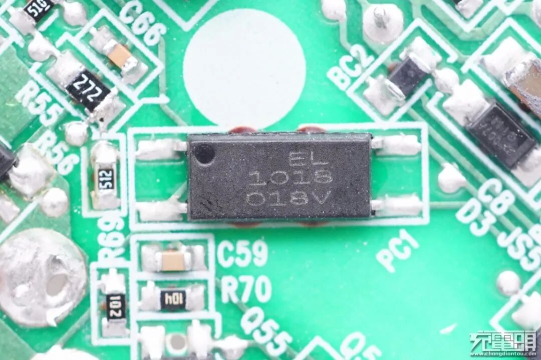 亿光EL 1018光耦,横跨在初级和次级之间,用于初级次级通信,反馈输出电压。