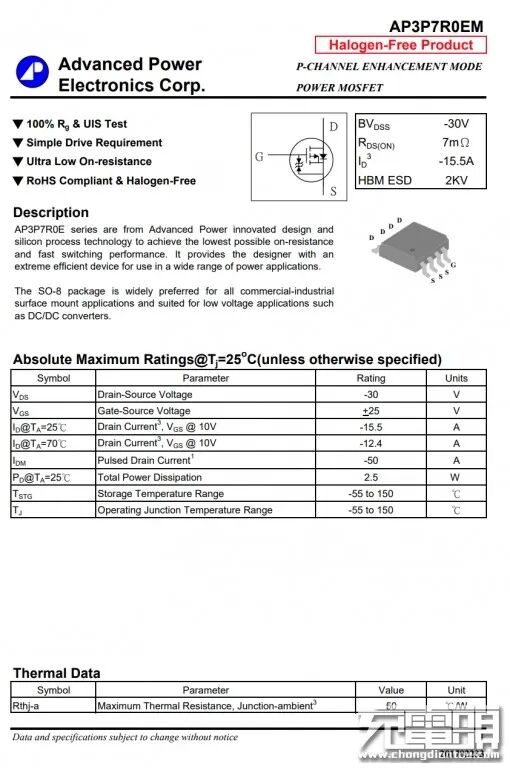 输出VBUS开关特写,富鼎 AP3P7R0E,PMOS,耐压30V,导阻7mΩ,SO8封装。