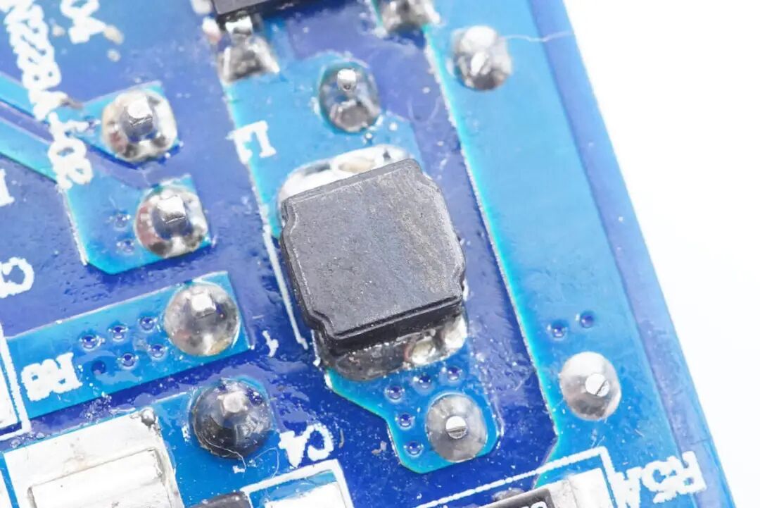输出端小板背面有同步整流控制器、整流管,协议芯片和VBUS开关管。