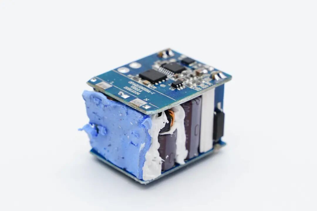 充电器输入端打胶和贴有导热垫。