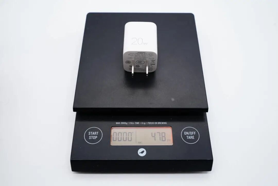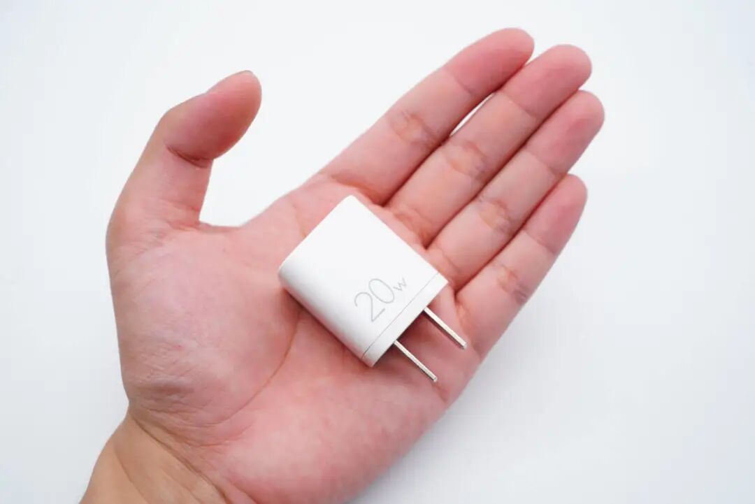 和苹果20W充电器直观对比,整体要小很多。