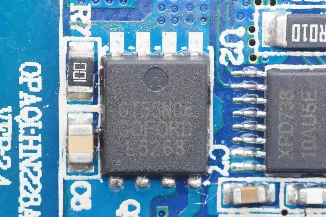 同步整流管特写,谷峰 GT55N06,耐压60V,DFN5*6封装。