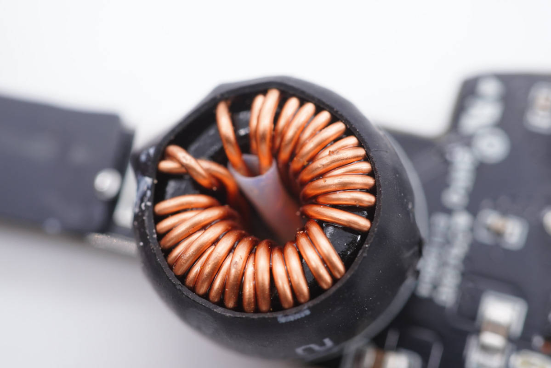 两块电路板通过输入端小板和负极金属片锡焊连接,电感外套绝缘管保护并打胶固定。