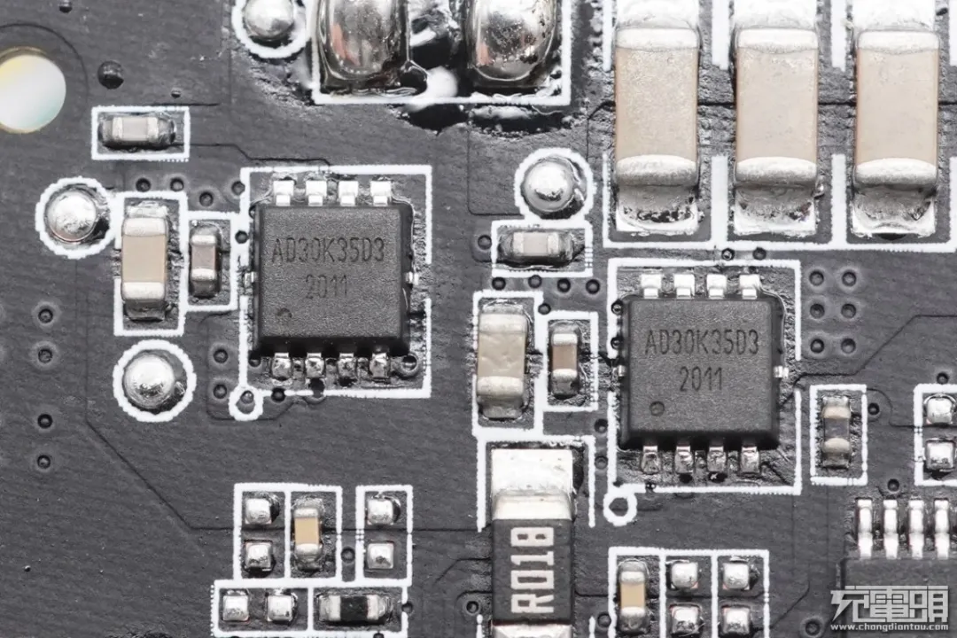 倍思车充使用四颗砹德曼AD30N80D5用于100W输出的同步升降压电压转换。