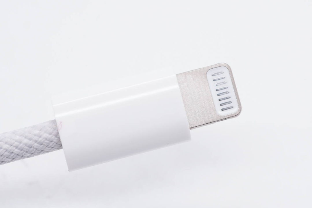 Lightning端子的8个银色触点为镀铑钌工艺,相比镀金效果更好,不会变黑。有效地防止汗液、液体等腐蚀触点金手指,更为经久耐用。