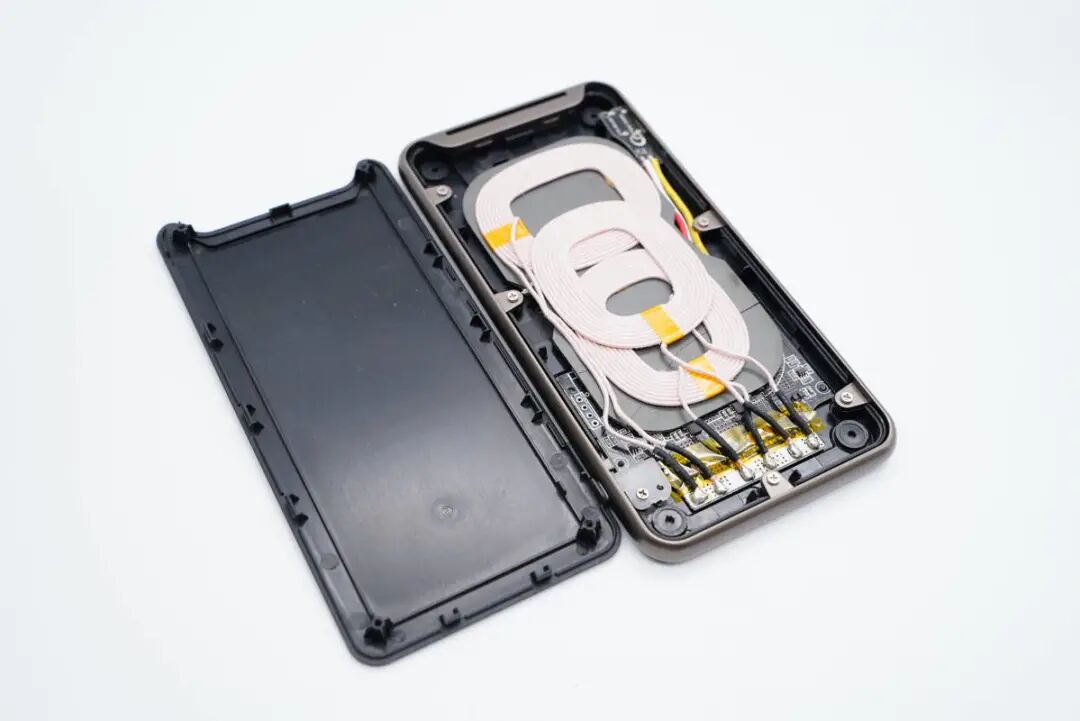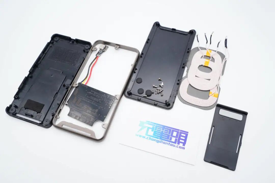 拆掉螺丝即可将机身壳打开,产品内置三个无线充电线圈,上中下三个区域都能进行无线充电,平时随手一放即可,更加省心。