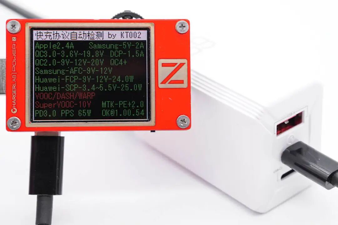 使用KT002测得USB-C2口支持Apple 2.4A、Samsung 5V2A和DCP协议,以及QC2.0/3.0、AFC、FCP、SCP、PE2.0、PD3.0、PPS快充协议。