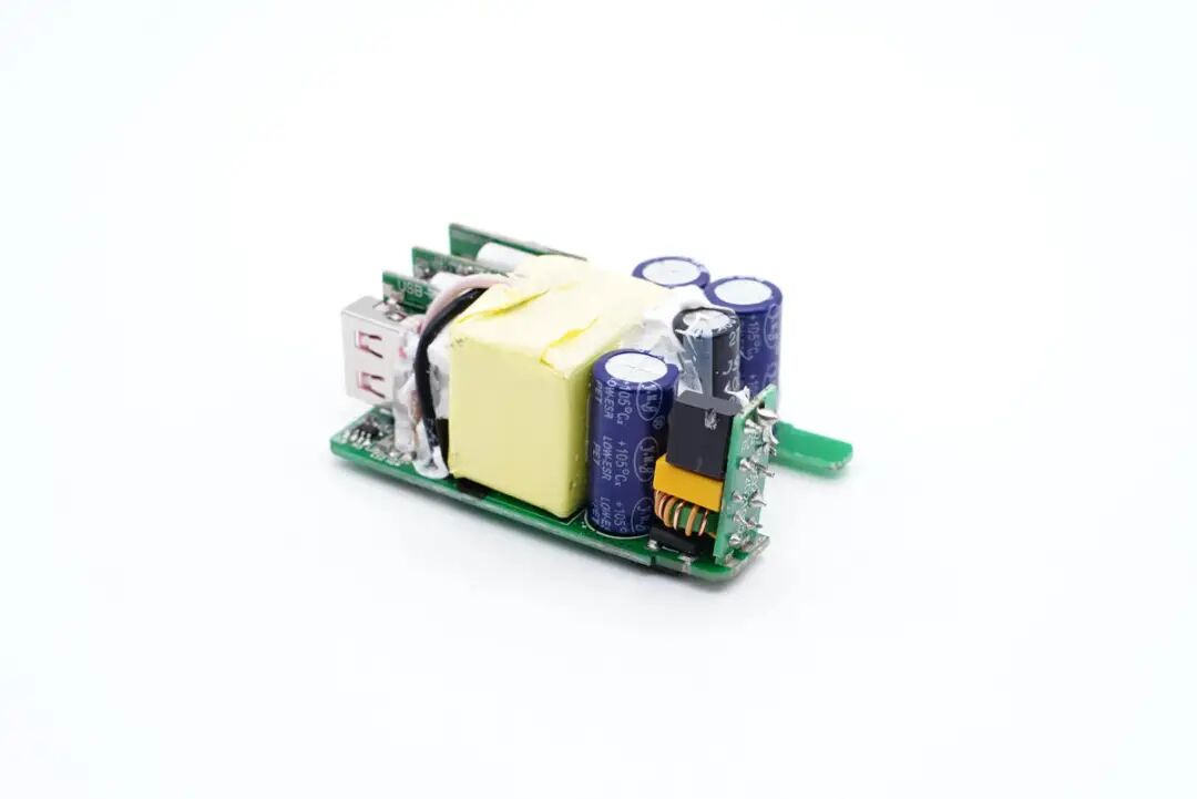 输出端三个USB母座均使用小板焊接,A口母座和变压器间打胶固定。