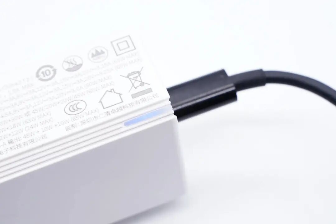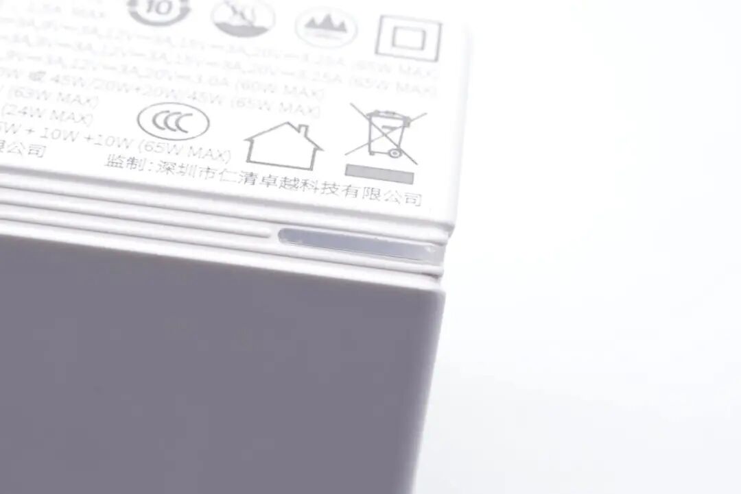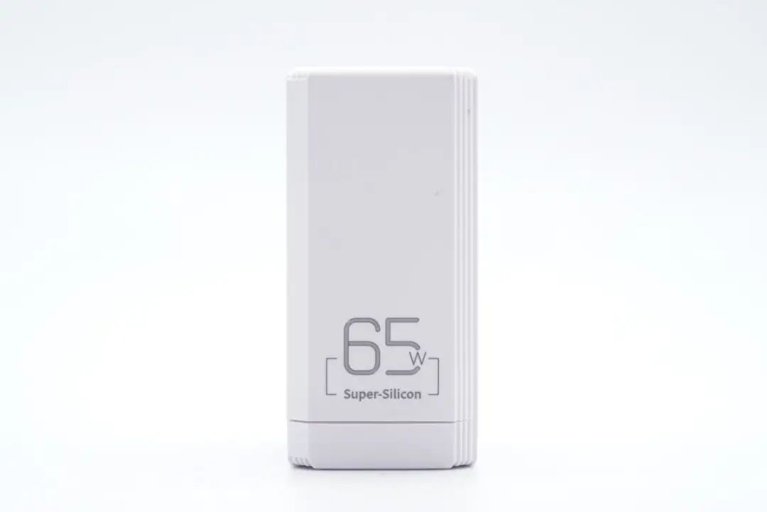其中一侧面印有65W Super-Silicon字样,表明这是一款65W超级硅充电器。