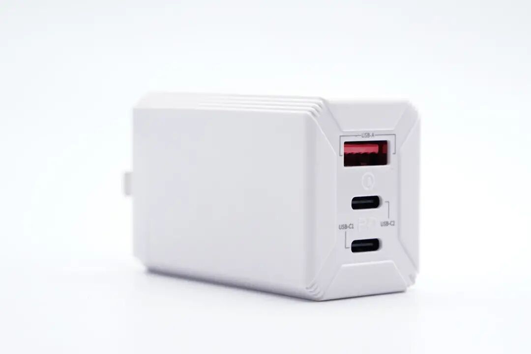 洛克二代65W 2C1A超级硅快充配备2C1A三个快充接口,其中双C口均支持65W快充输出,支持功率盲插,使用方便。USB-A口支持最大60W输出,而且还支持华为22.5W SCP快充,整体性能强悍。下面我们就对其进行详细拆解,看看充电器内部用料做工如何。