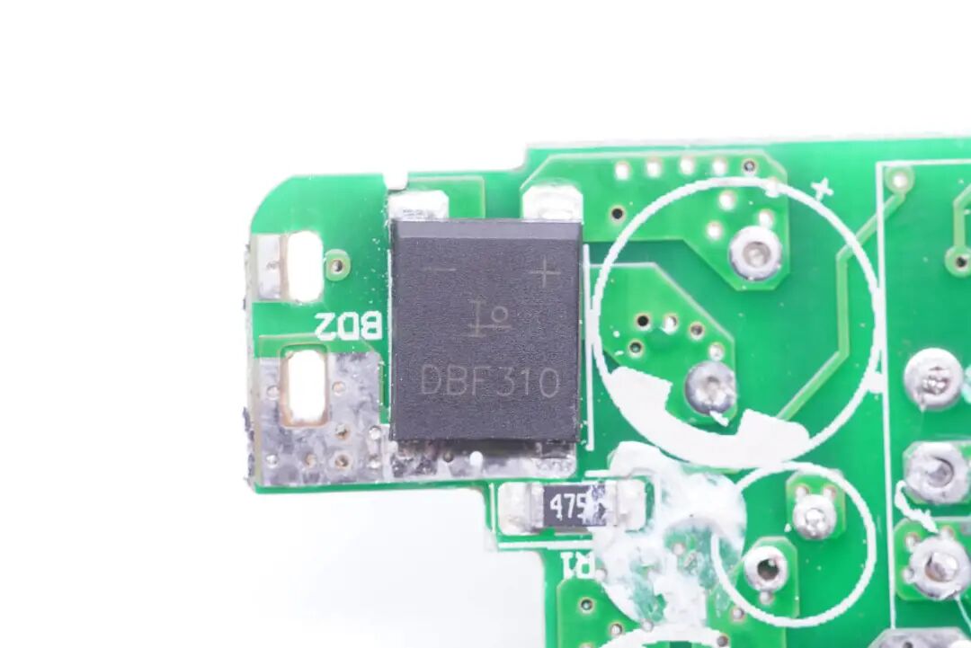 拆下其它器件,主板正面还有整流桥以及同步整流控制器。