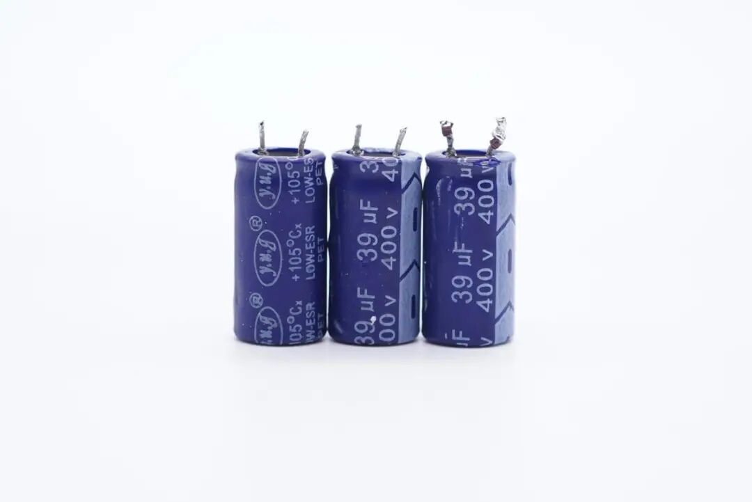 三颗蓝色高压滤波电解电容来自昱光电子,规格都是400V 39μF。