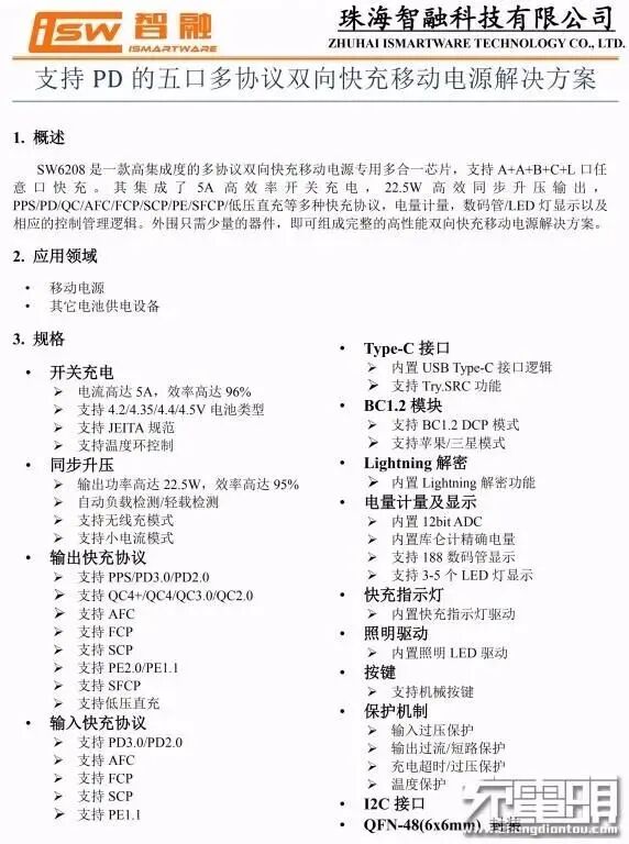 智融SW6208规格资料。
