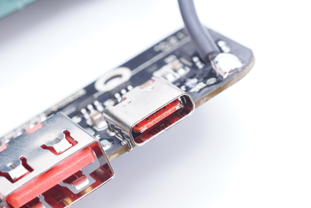 USB-C母座特写,过孔焊接。