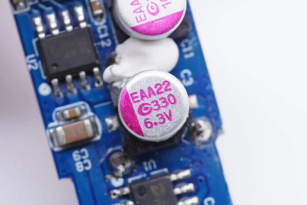 输出滤波固态电容来自钰邦,规格为6.3V 330μF。