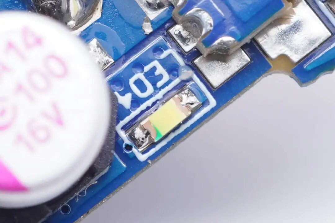 对应的输出滤波固态电容也是来自钰邦,规格为16V 100μF。