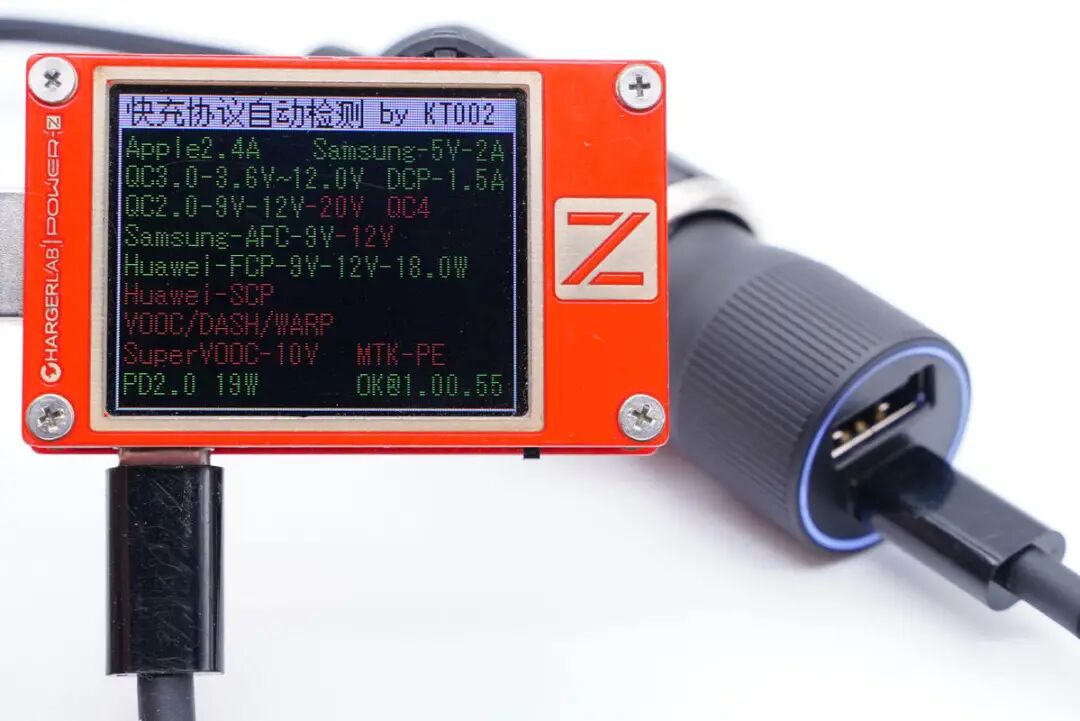 另外使用KT002测得USB-C口支持Apple 2.4A、Samsung 5V2A、DCP协议,以及QC2.0/3.0、AFC、FCP、PD2.0快充协议。