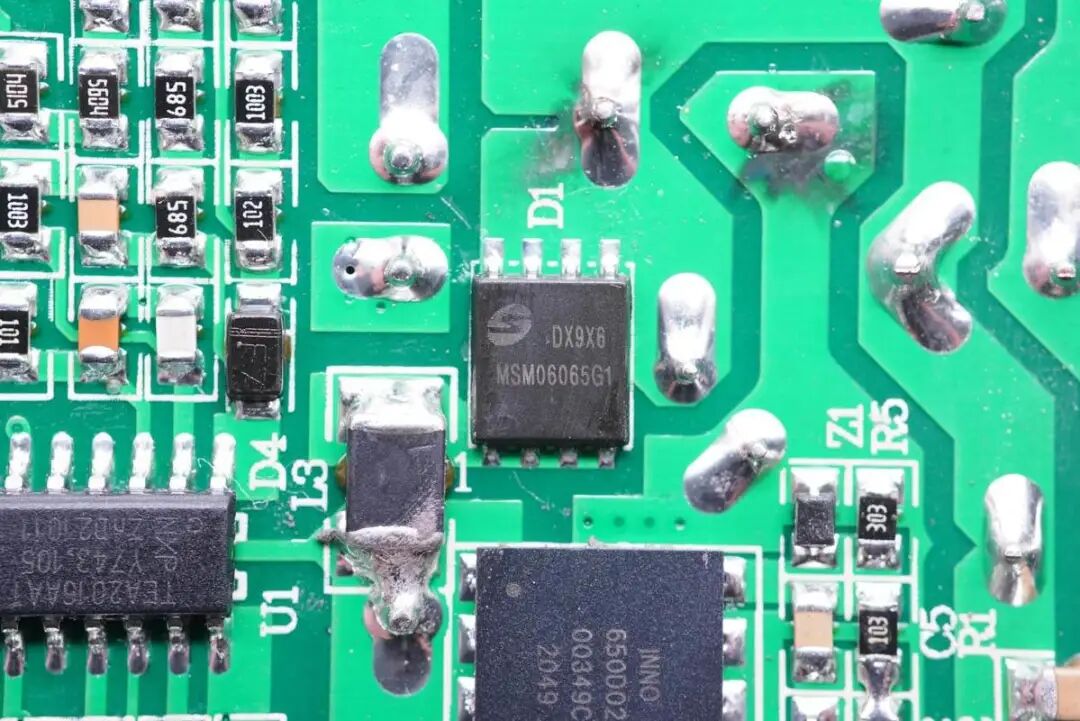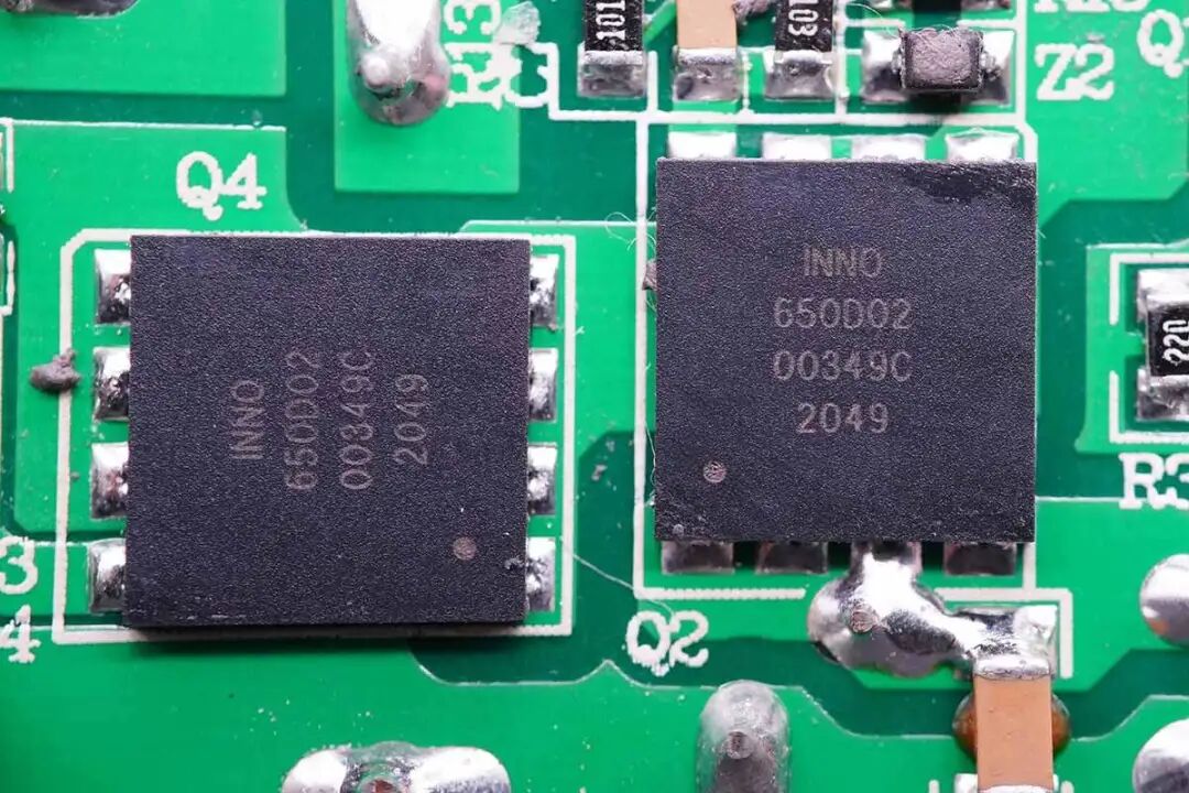 LLC开关电源的两颗高压开关MOS管也是采用的英诺赛科INN650D02氮化镓功率芯片。