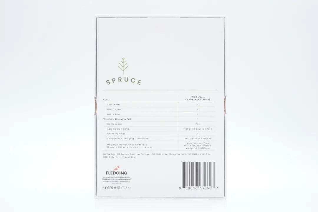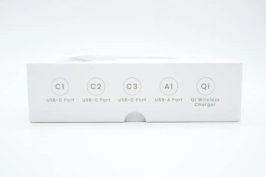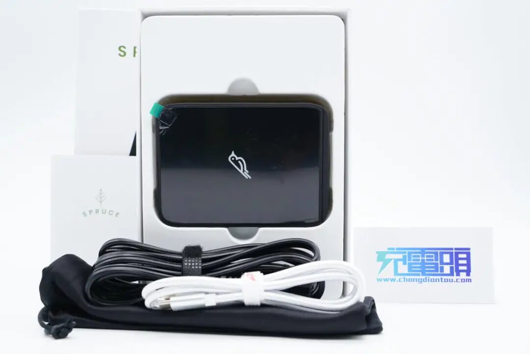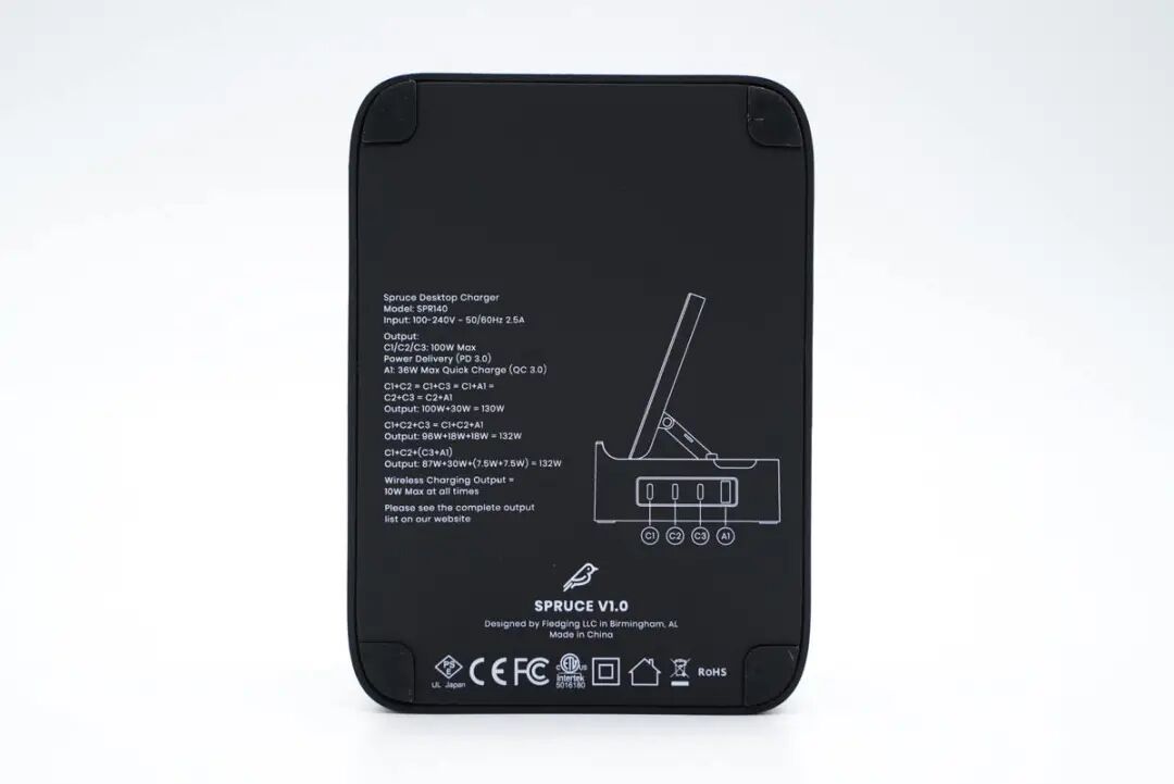 SPRUCE这款二合一产品不仅拥有10W输出的无线充电板,还拥有一个强大充电器底座,配备3C1A四个USB接口,三个C口还都支持100W PD快充,可直接给笔记本电脑充电。