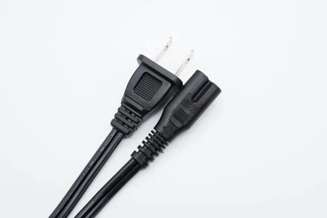 电源线两端分别是双脚插头和8字插头。