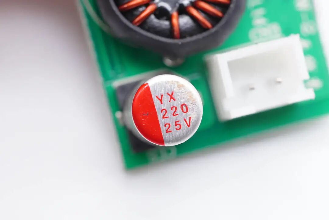 输出滤波固态电容也是来自云星电子,规格为25V 220μF。