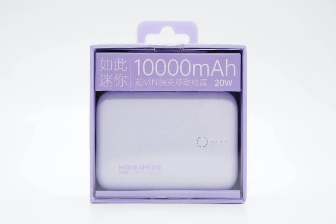 包装盒上印有如此迷你、10000mAh、20W卖点,以及超MINI快充移动电源名称。