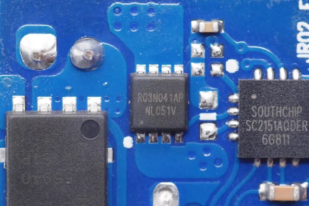 协议芯片采用南芯SC2151A,该芯片已经获得USB-IF PD3.0认证,TID:4869。其采用16-pin QFN 4*4mm封装,是一颗支持PD和DP/DM快充协议的控制器,内部集成反馈环路,支持最新的Type-C和PD3.0标准,同时还支持使用DP/DM接口的专有快充协议,适用于各类适配器应用。