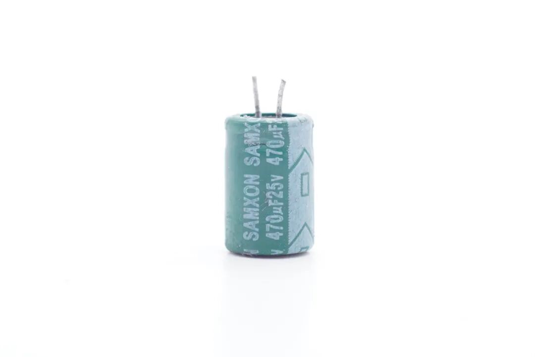 另一颗电容来自SAMXON三信,规格为25V 470μF。