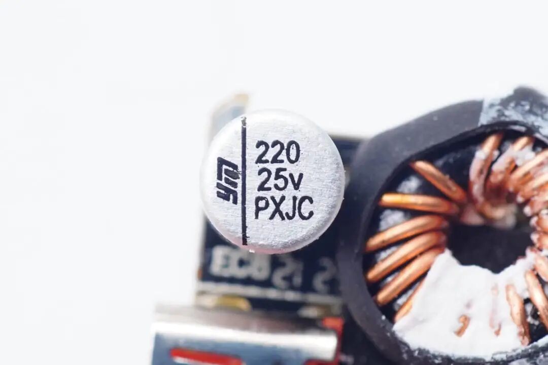 C口输出滤波采用的是一颗永铭的NPX系列固态电容,规格为25V 220μF。