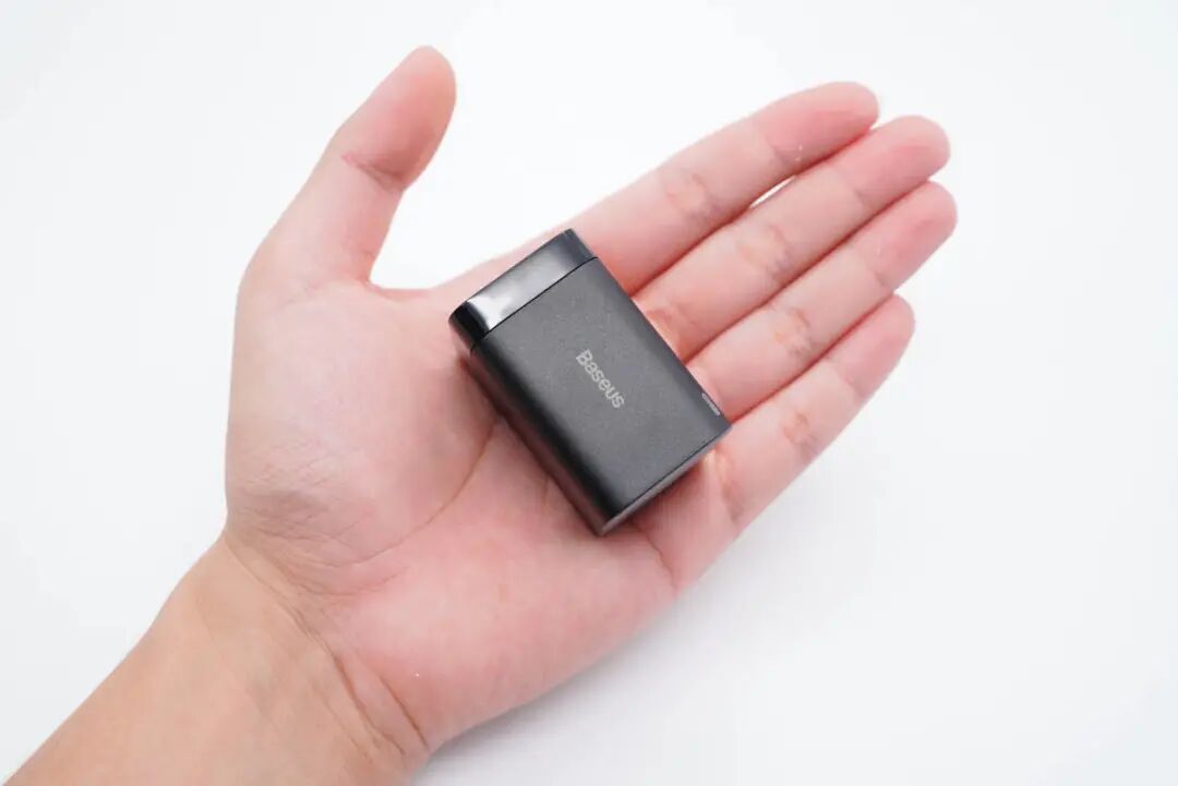 拿在手中很轻便,可以满足轻薄型笔电、平板、手机等设备的充电需求。