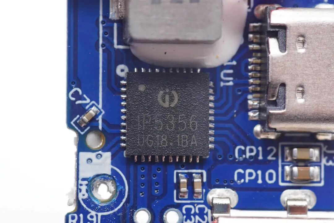 移动电源主控芯片采用的是英集芯IP5356。这是一款集成多种主流快充输入/输出协议,以及升降压转换器、锂电池 充电管理、电池电量指示等多种功能的移动电源SoC芯片,可以为快充移动电源的开发提供完整的解决方案。