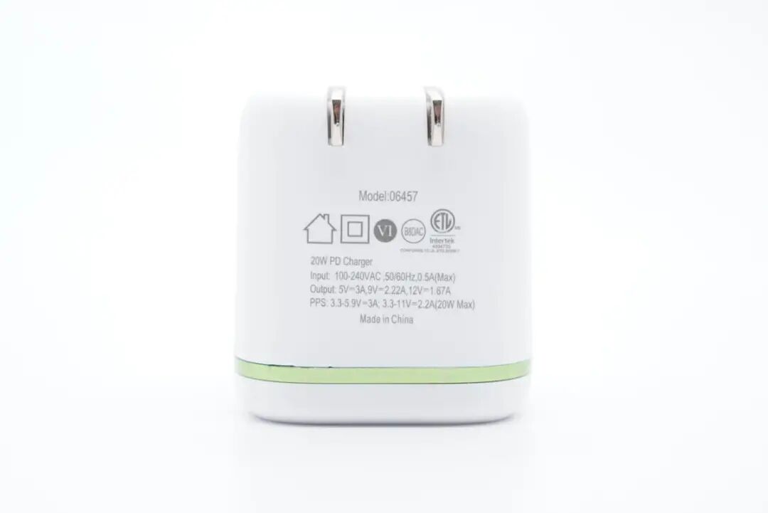 AT&T这款充电器采用白色外壳,不过设计有绿色装饰环,显得不那么单调。此外充电器兼容QC2.0/3.0、AFC、FCP、PD3.0、PPS快充协议,具备两组PPS电压档位,整体兼容性不错,既可以很好适配苹果iPhone 12/13系列手机,对小米、三星等品牌手机也有很好的兼容性。