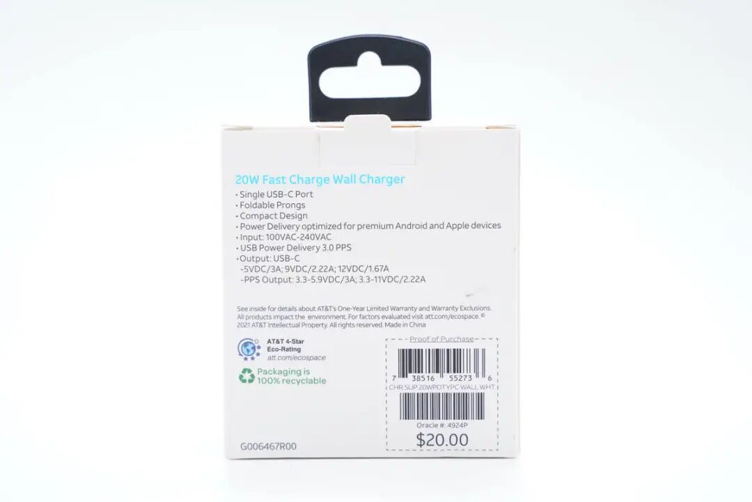 一、AT&T迷你20W快充外观