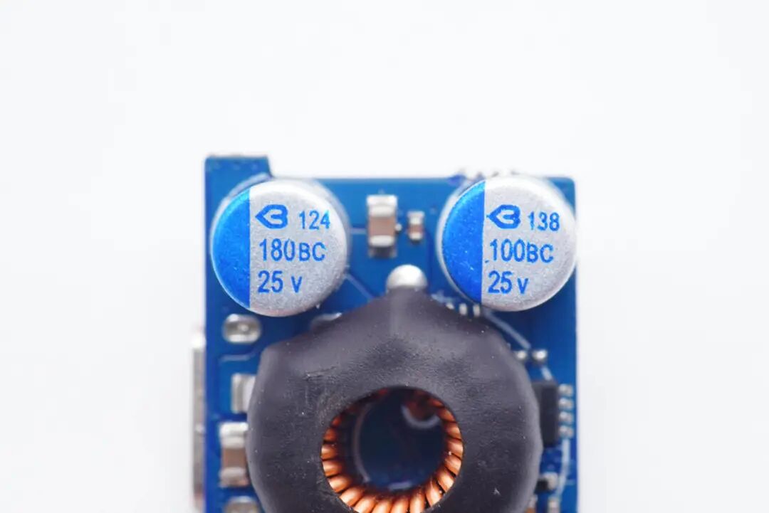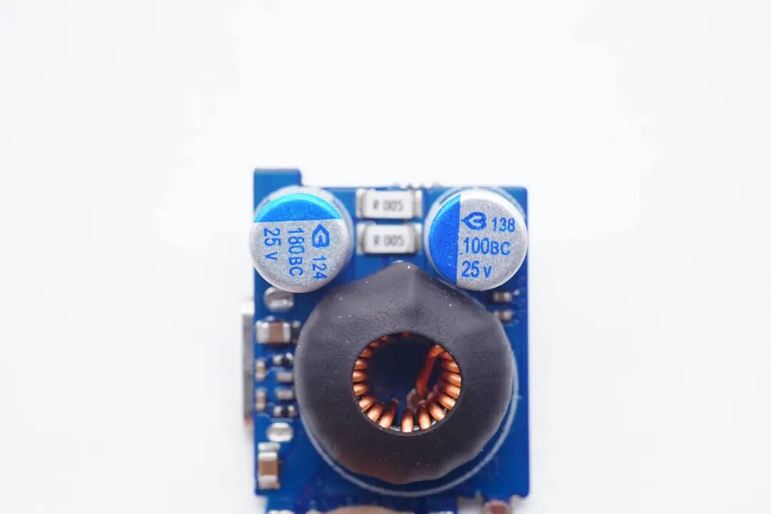 另一面设有降压电感和滤波固态电容。