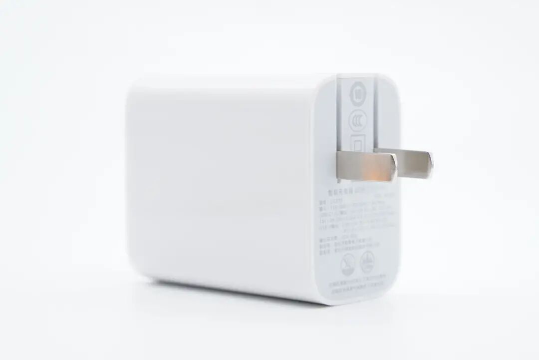 输入端平直切面设计,可以很好贴合稳定使用。外壳上印有充电器参数: