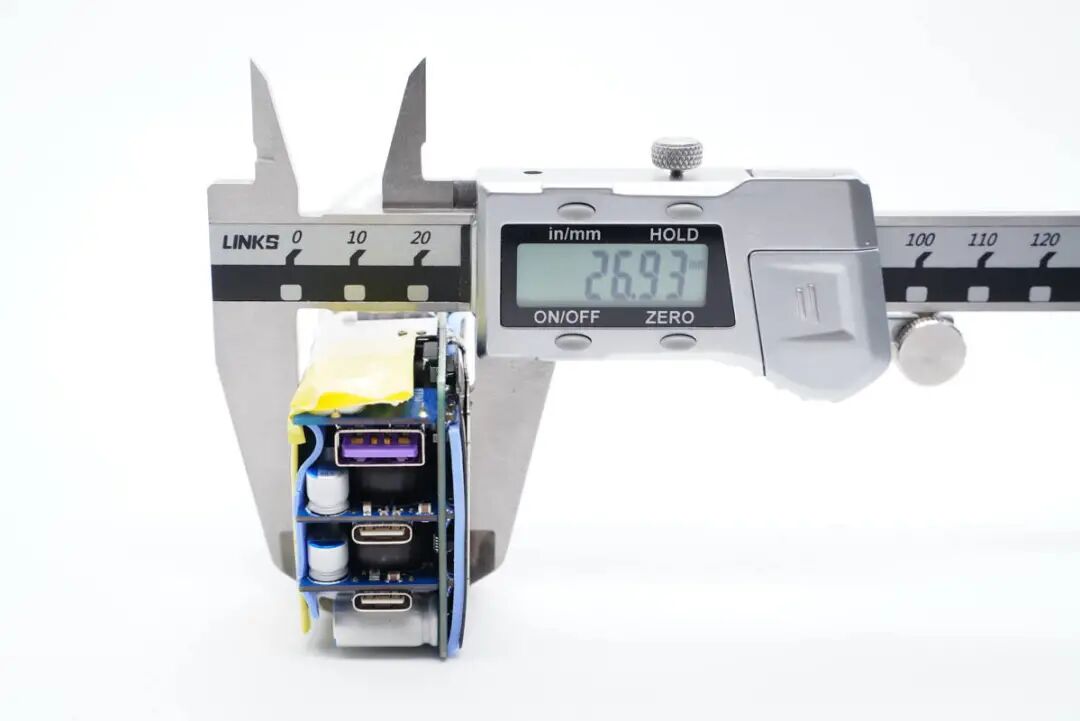 输出端一览,三个USB母座焊接在小板上,C1和C2口母座所在小板上设有二次降压电路。