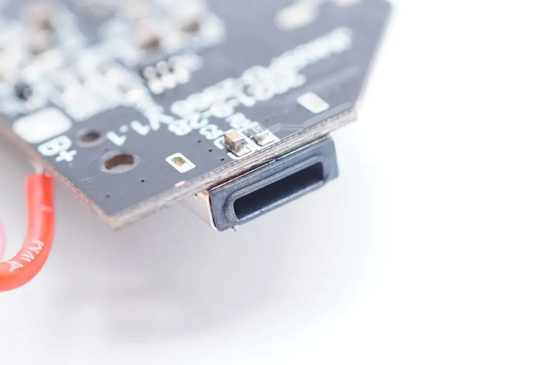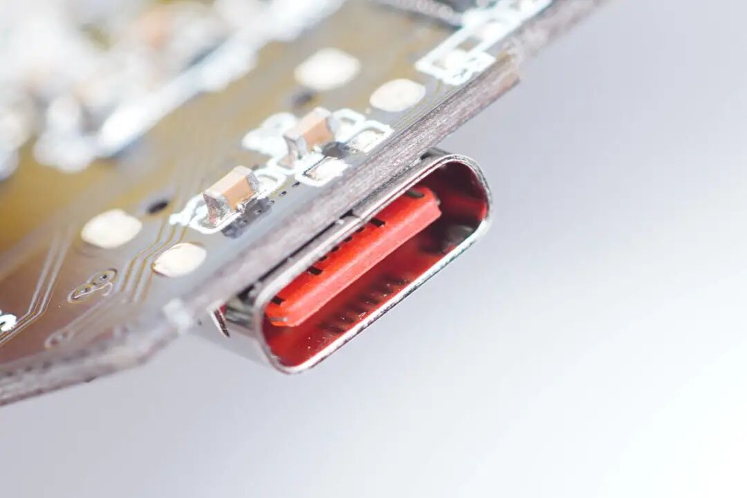 USB-C母座特写,过孔焊接。