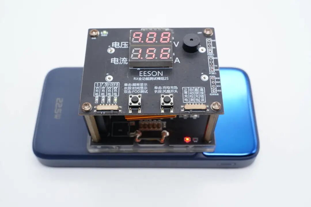 数显屏下有一颗智融SW5001,这是一颗高度集成的无线充发射端集成功率级芯片,内部集成了高效率的全桥变换器和无损电流采样,支持PPS/PD/FCP/SCP/AFC等多种快充协议。集成电压和电流ASK解码电路、Q值检测电路,内部PWM发生器和FSK调制电路,适用于无线充发射端应用,支持最高12V输入,耐压16V,支持15W输出功率。