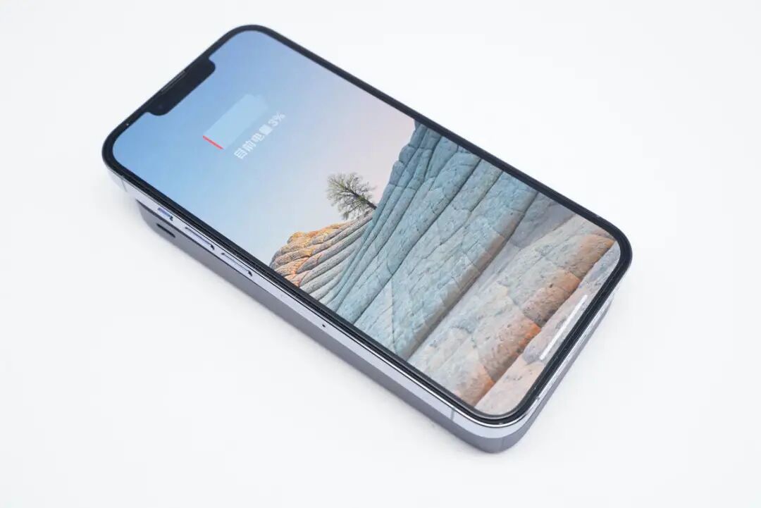此外移动电源的吸附力也很好,可轻松吸附起iPhone 13 Pro悬空不掉落。