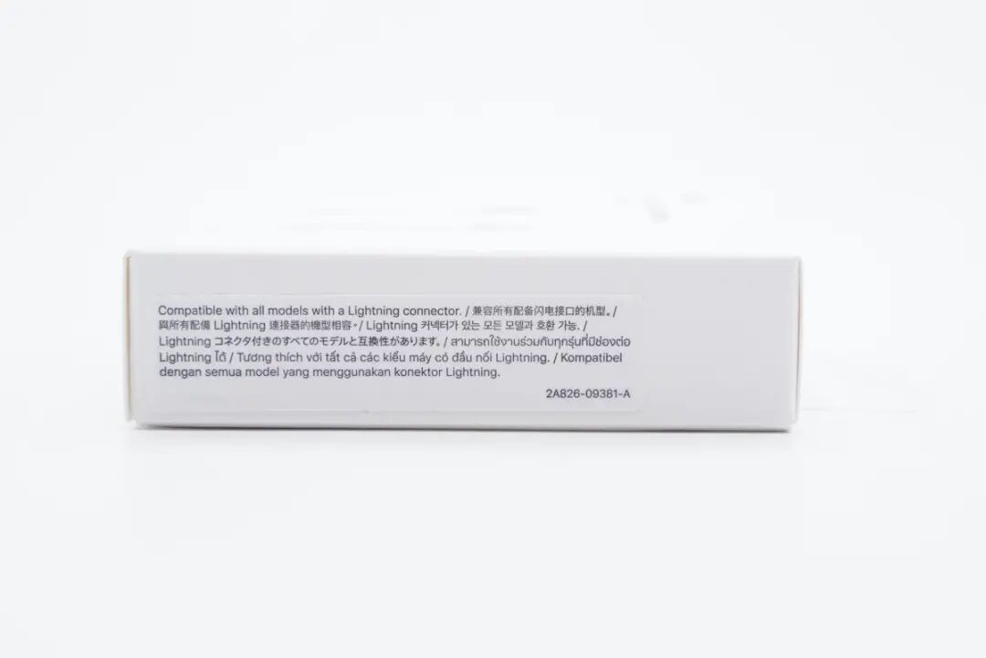 另一侧贴纸上有产品兼容设备信息,所有配备闪电接口的机型都能兼容。