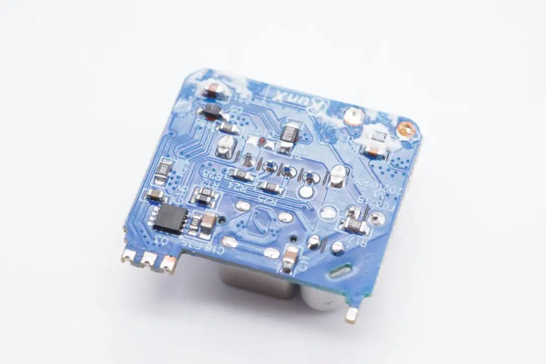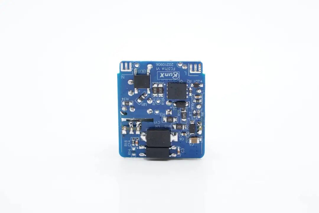 小板背面设有整流桥、氮化镓功率芯片、光耦和贴片Y电容。
