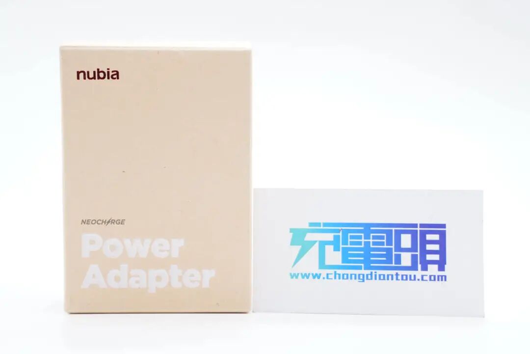 充电器采用牛皮纸盒包装,正面左上角有nubia品牌logo,下方印有NEOCHARGE和Power Adapter字样。