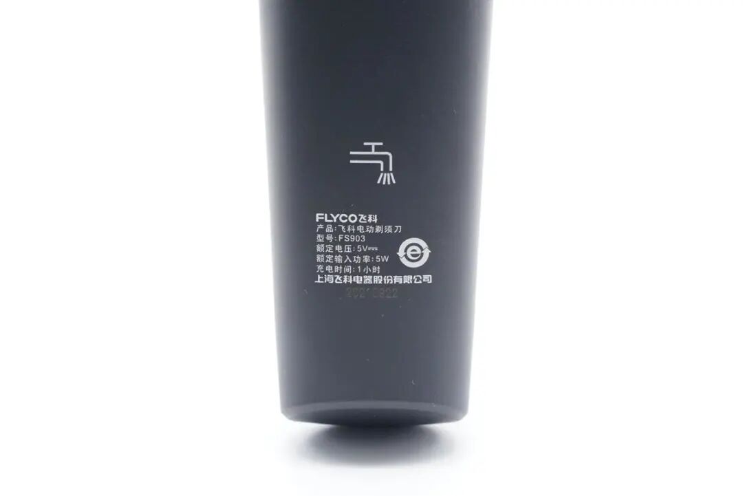 FLYCO飞科这款电动剃须刀采用黑色包装盒,正面印着产品外观、品牌logo以及产品型号,型号为FS903。