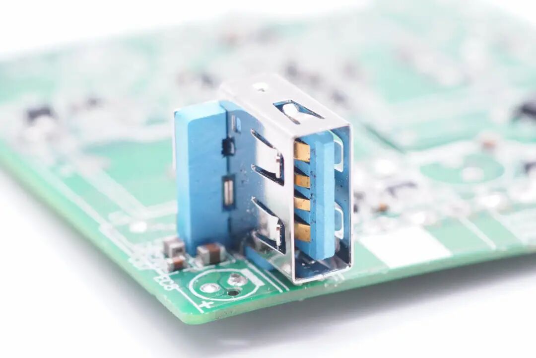 USB-A母座特写,正负极触点加宽,支持低压大电流快充。